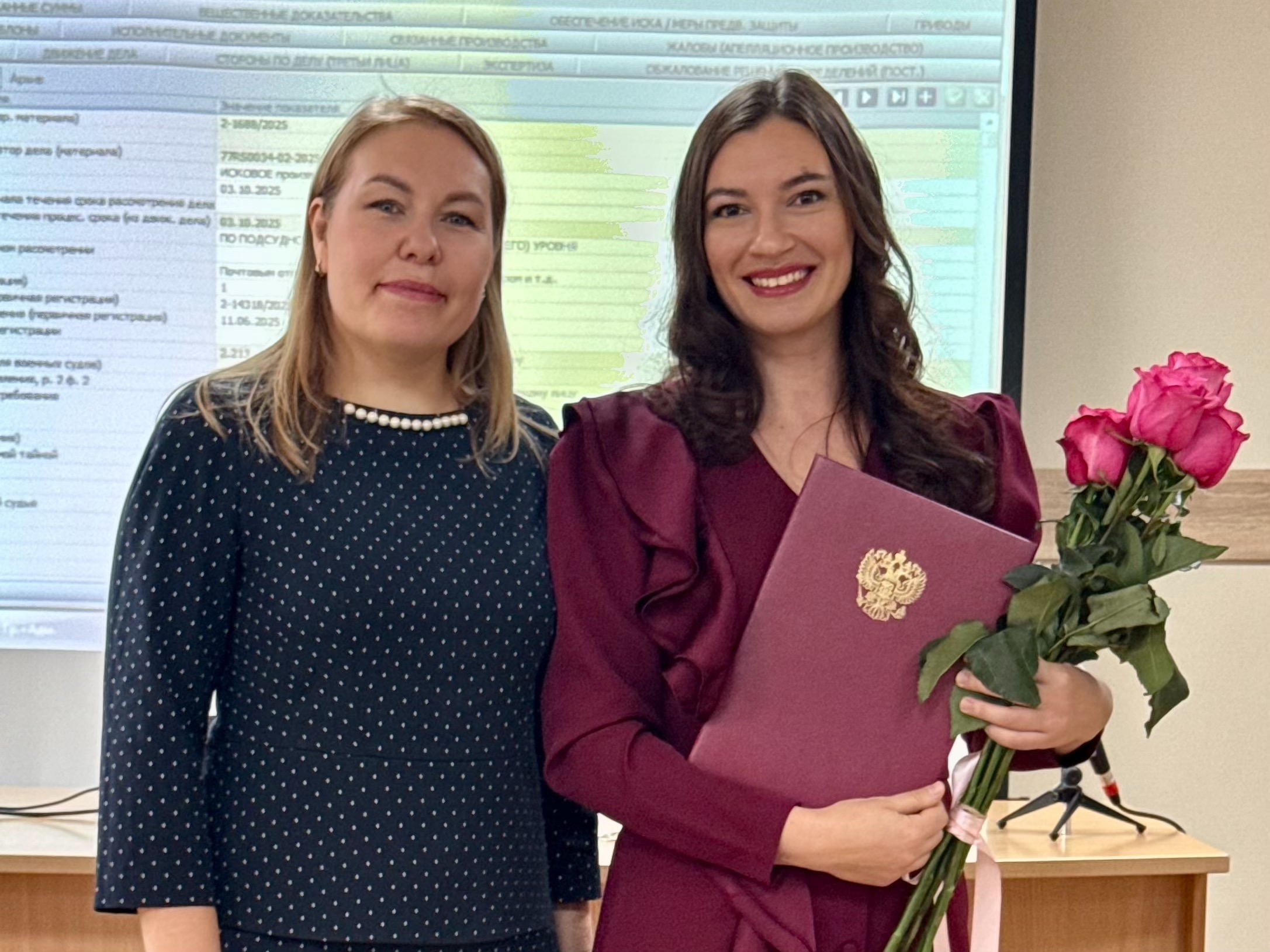 Сегодня коллектив Советского районного суда г.Орска поздравил Васильеву Марьяну Борисовну, которая Указом Президента РФ от 06.10.2025 № 706 "О назначении судей федеральных судов и о представителях Президента Российской Федерации в квалификационных коллегиях судей субъектов Российской Федерации" назначена на должность судьи Гайского городского суда Оренбургской области. Свой путь в юриспруденции Марьяна Борисовна начала более 12 лет назад. За эти годы пройден большой профессиональный путь от секретаря судебного заседания до помощника судьи. Председатель суда Колесникова Аниса Нафисовна пожелала Марьяне Борисовне успехов и новых достижений в профессиональной деятельности, крепкого здоровья и неутомимой жизненной энергии, уважения и взаимопонимания в новом коллективе! |